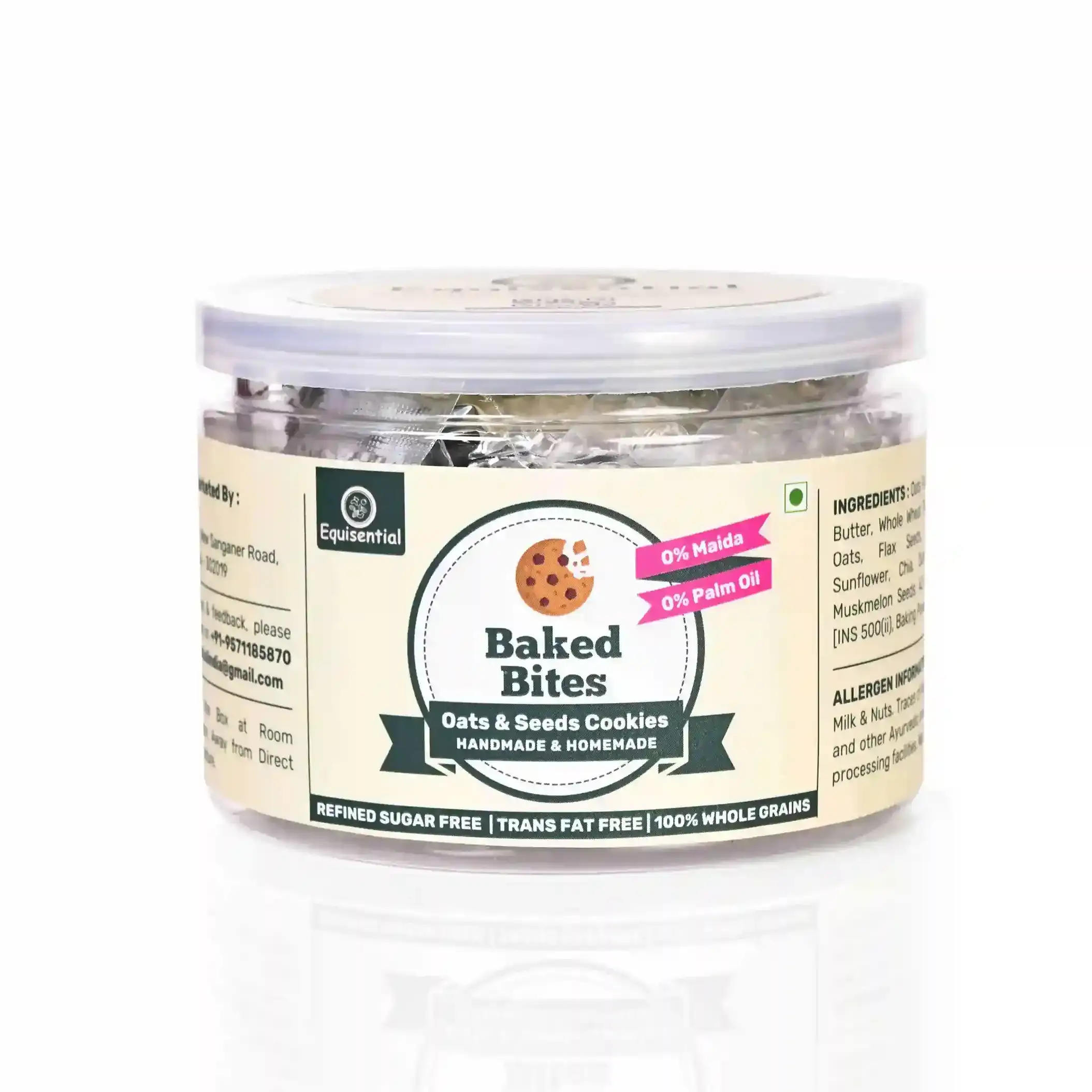 - Naturally sweetened with jaggery powder, which makes baked bites cookies by Equisential low on fat and easily digestible while providing you nutrients of jaggery.