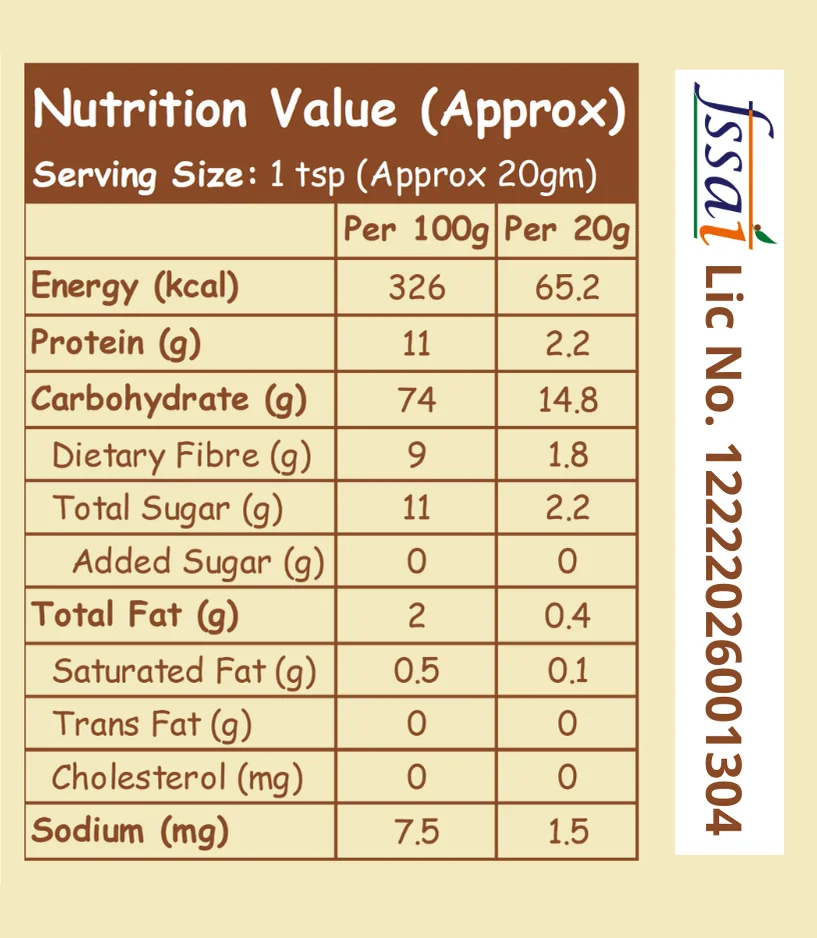 - Traces of other Millets, Seeds and Nuts due to shared processing facilities.