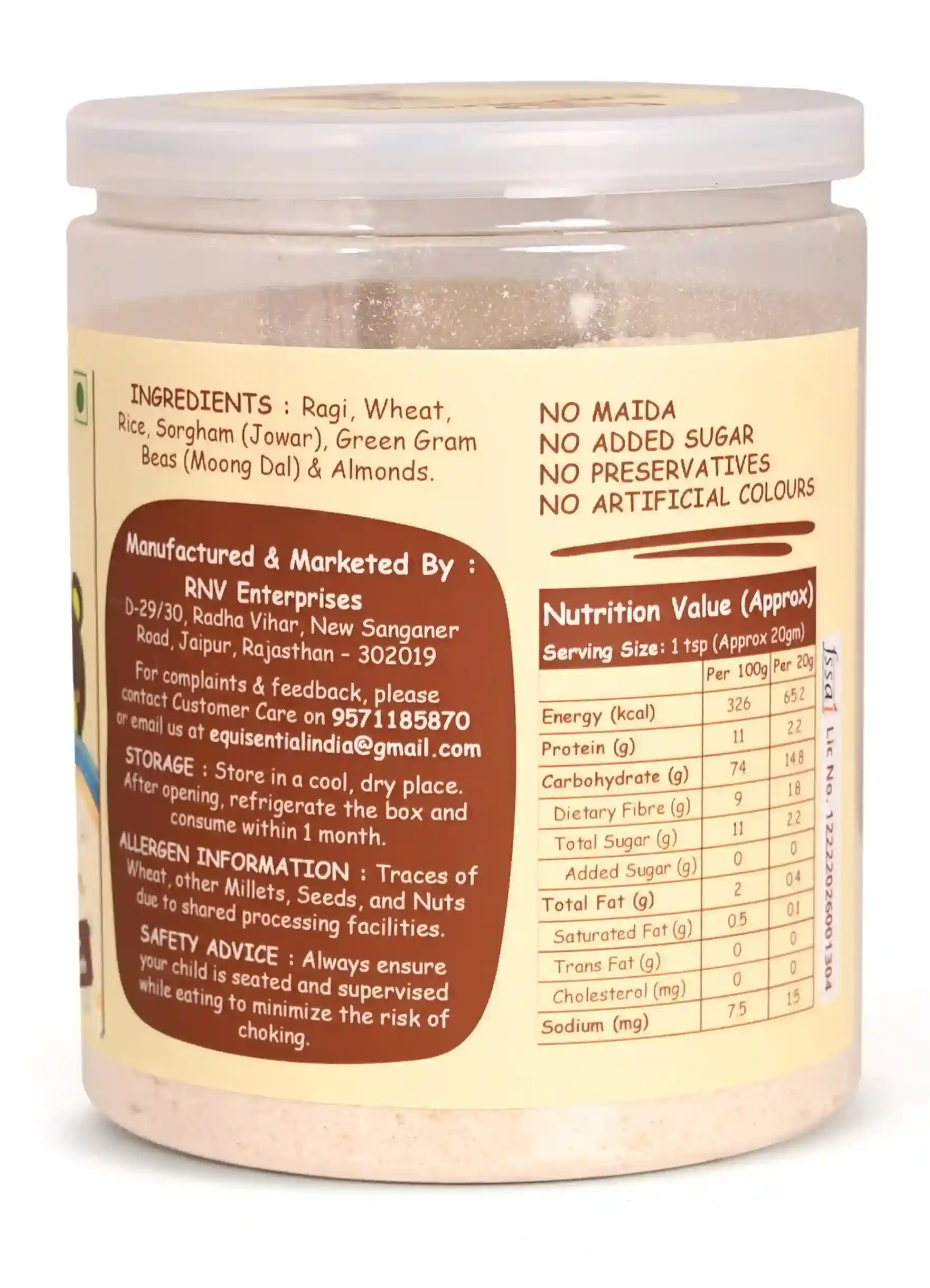 No Artificial Colours, No Added Sugar, No Preservatives, No Maida (Refined Flour) but Pure Healthy and Nutritious Ingredients.