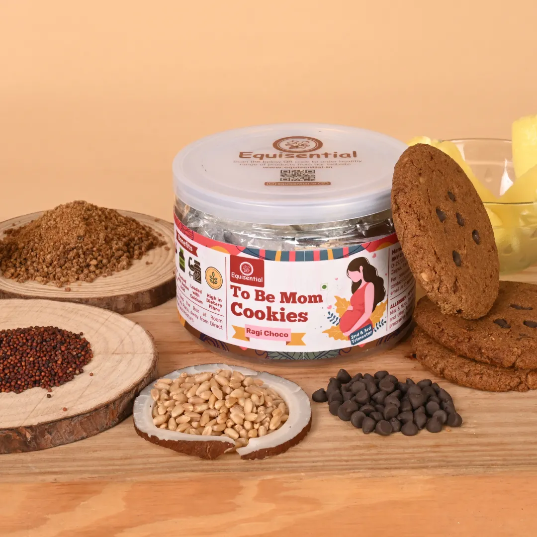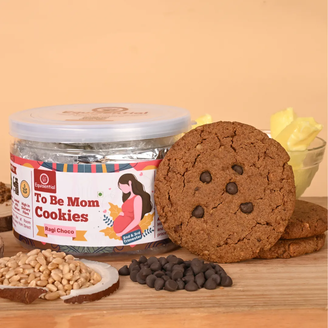 If you are looking to buy Eggless Ragi Choco Cookies with Healthy and Clean Ingredients, Without Maida, Palm Oil, Refined Sugar, or Preservatives, to nourish yourself and the little baby inside you, then you are at the right place. Buy To Be Moms Ragi Choco Cookies Online from Equisential today and get a healthy, delicious snack for your pregnancy cravings and pregnancy nutrition.