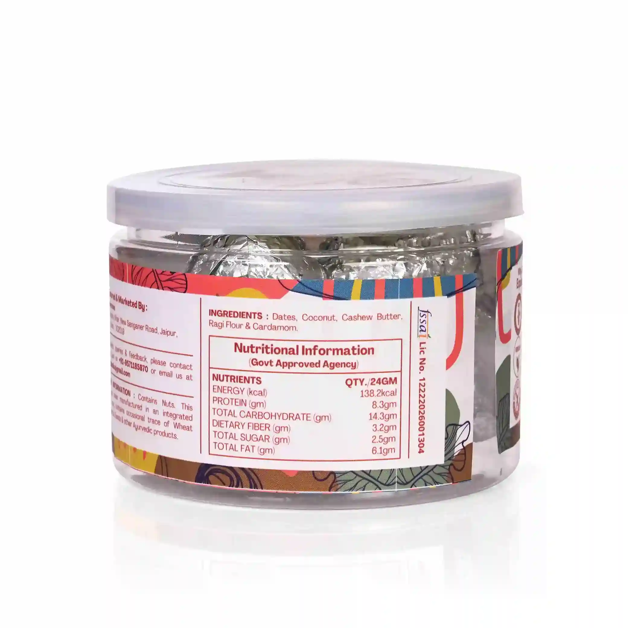 Dates, Coconut, Cashew Butter, Ragi Flour & Cardamom.